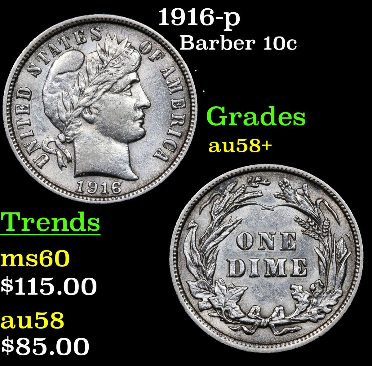 1916-p . . Barber Dime 10c Grades Choice AU/BU Slider+. Final year of the Barber Dime pattern.