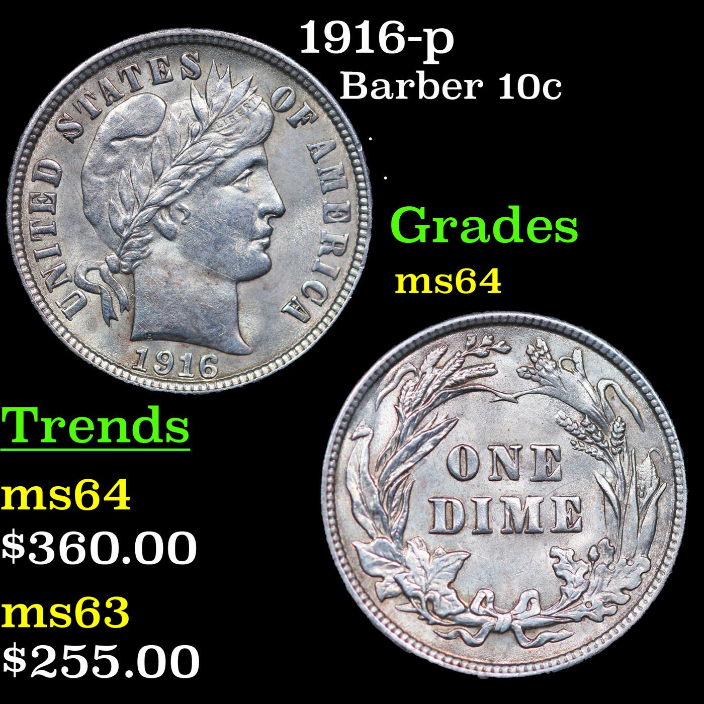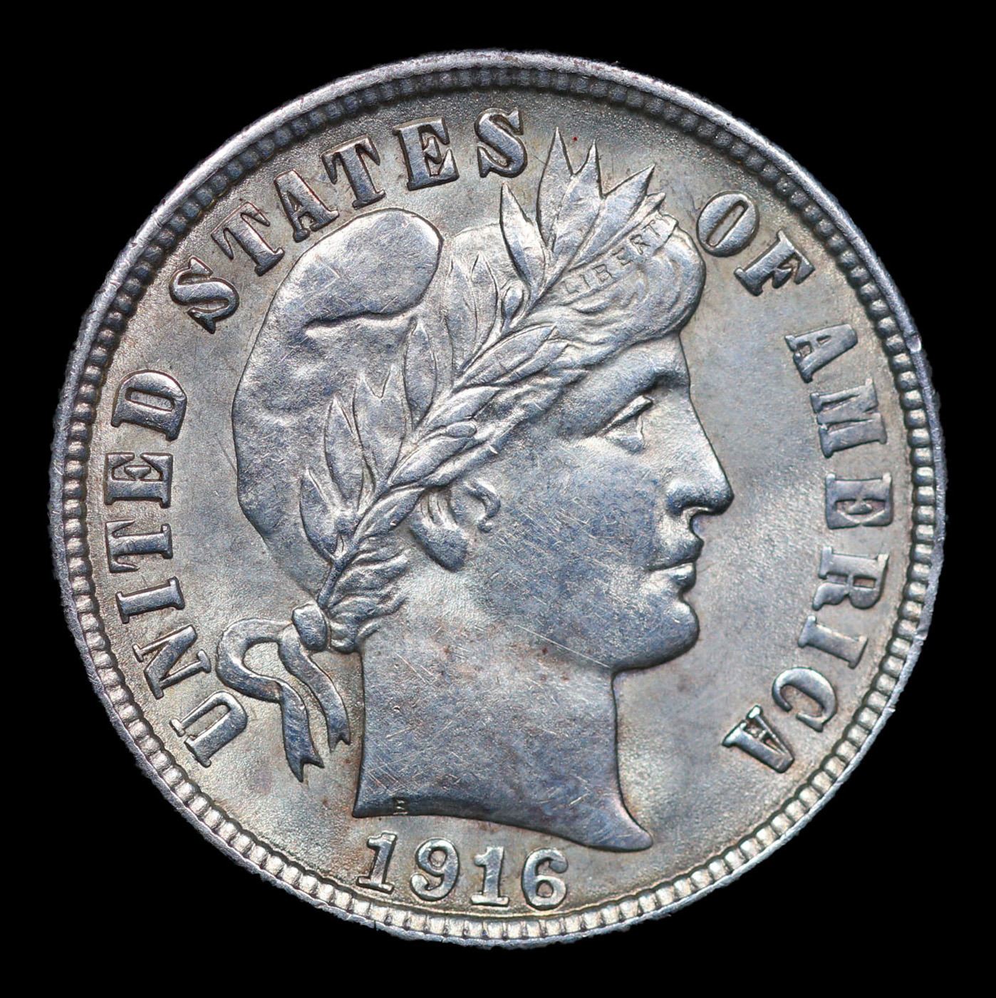 1916-p Barber Dime 10c Grades Choice Unc. Final year of the Barber Dime pattern.