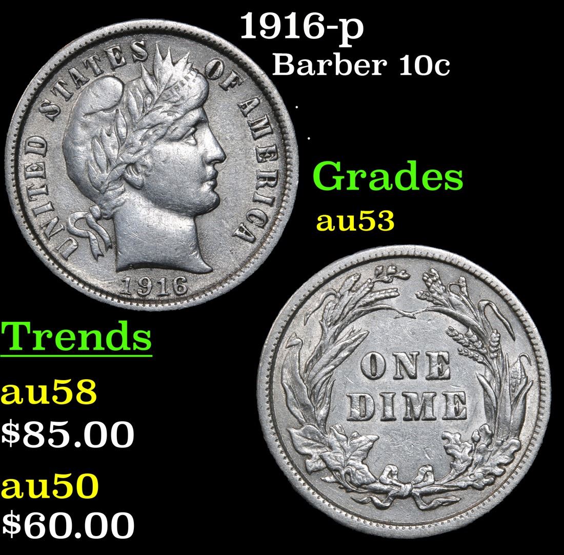 1916-p . . Barber Dime 10c Grades Select AU. Final year of the Barber Dime pattern.