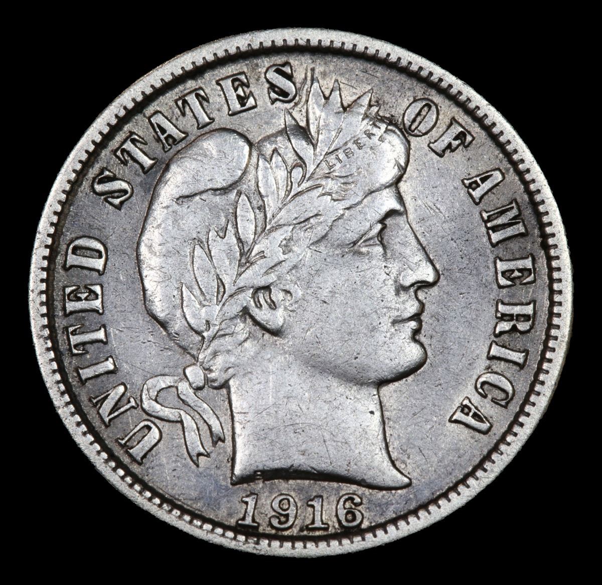 1916-p . . Barber Dime 10c Grades Select AU. Final year of the Barber Dime pattern.
