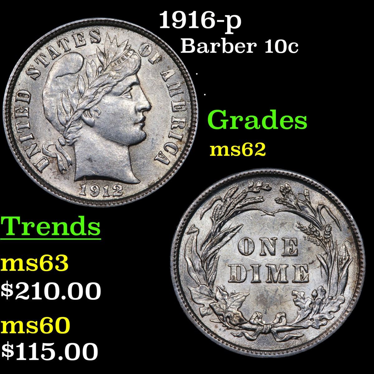 1916-p Barber Dime 10c Grades Select Unc. Final year of the Barber Dime pattern.