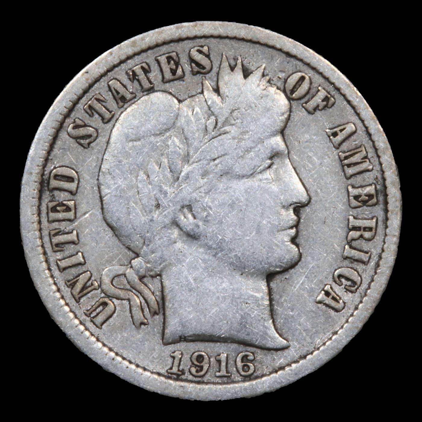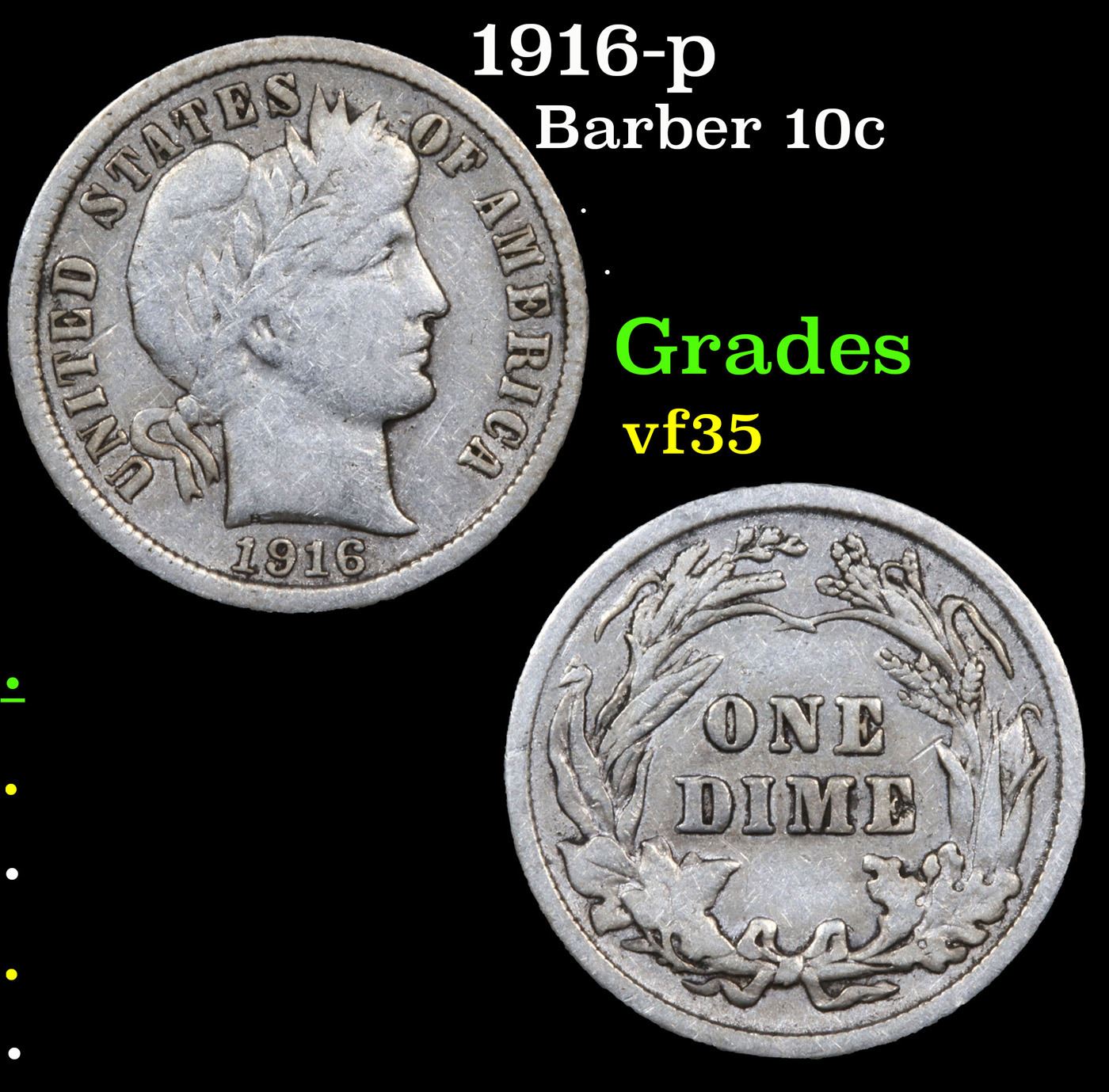 1916-p Barber Dime 10c Grades vf++. Final year of the Barber Dime pattern.