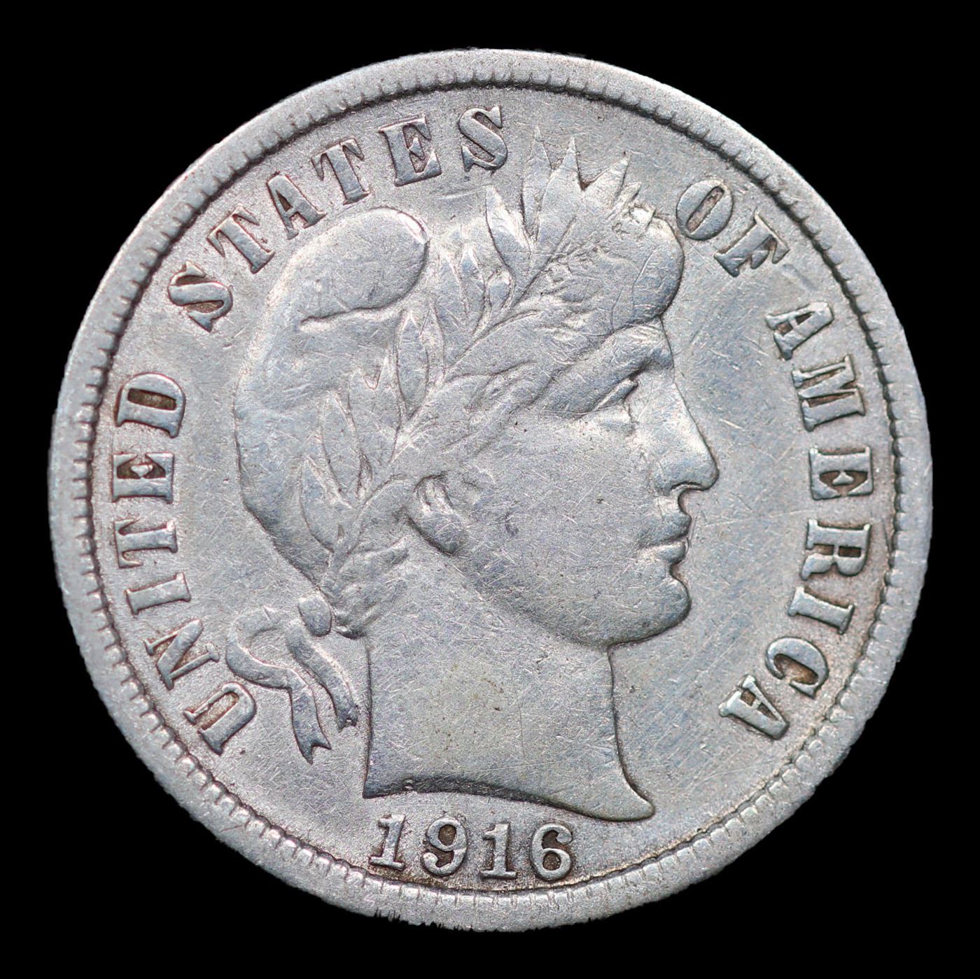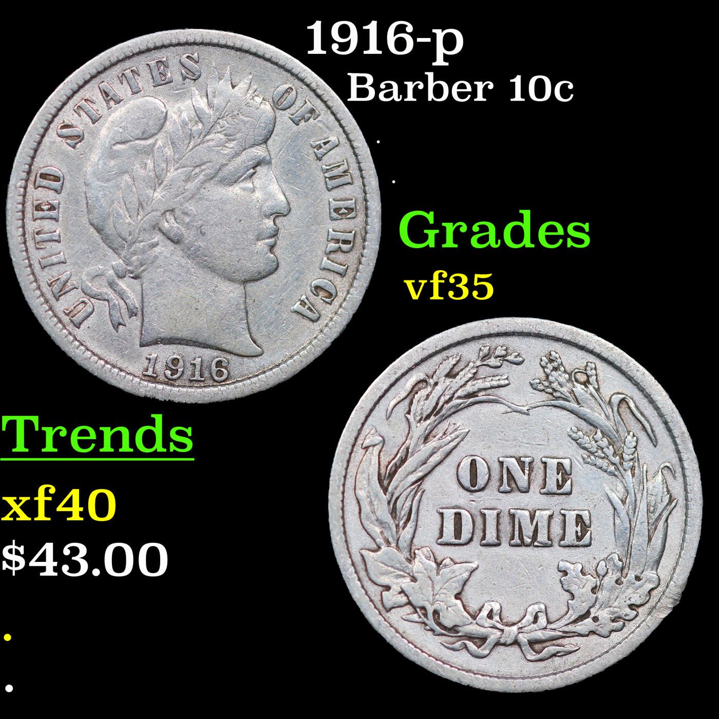 1916-p Barber Dime 10c Grades vf++. Final year of the Barber Dime pattern.