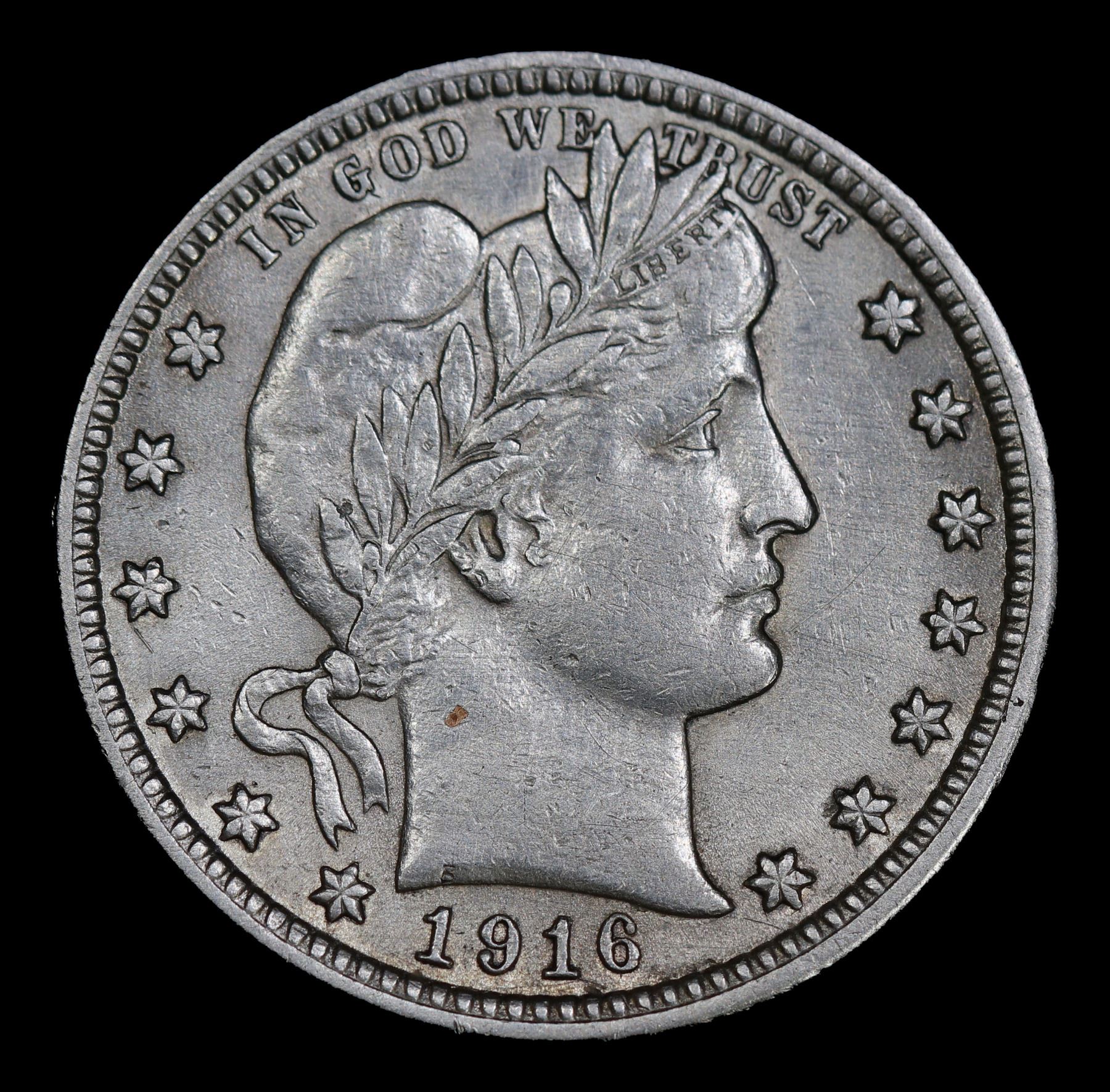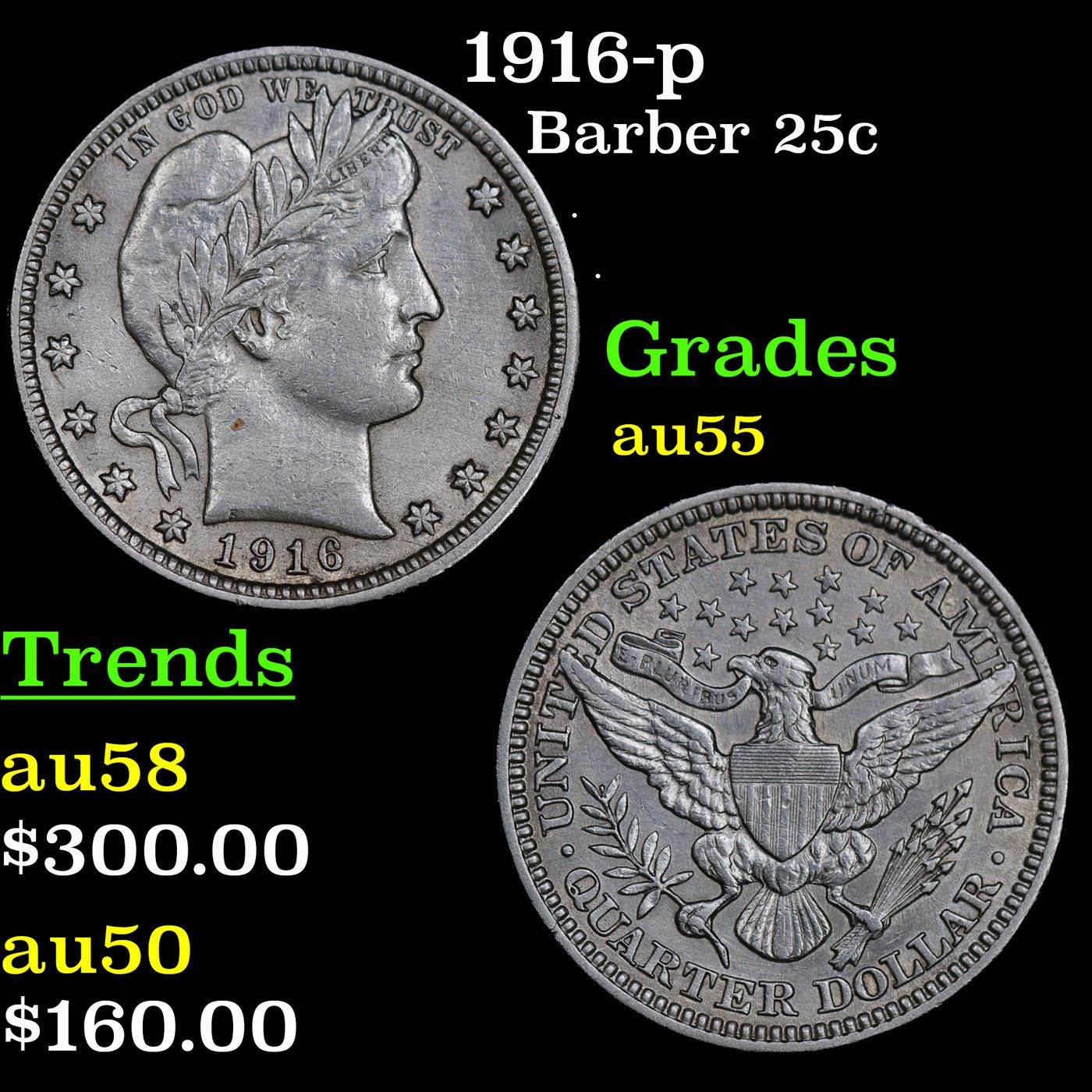 1916-p Barber Quarter 25c Grades Choice AU. Final year of issue of the Barber series.