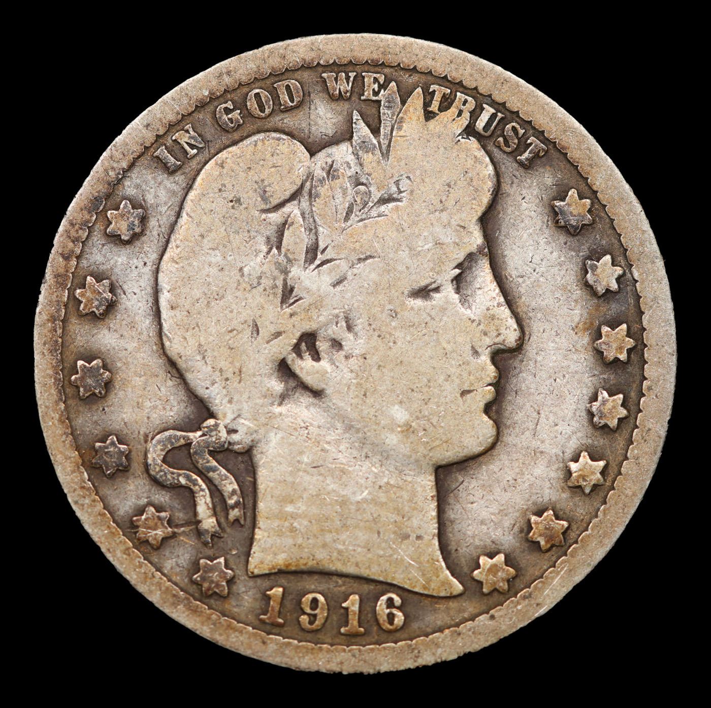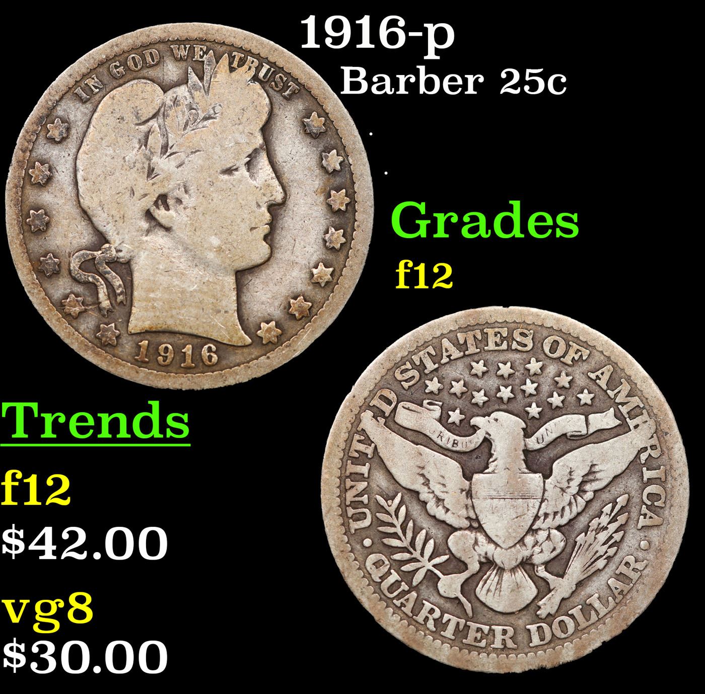 1916-p Barber Quarter 25c Grades f, fine. Final year of issue of the Barber series.