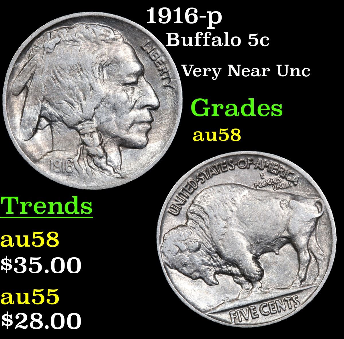 1916-p . Very Near Unc Buffalo Nickel 5c Grades Choice AU/BU Slider.