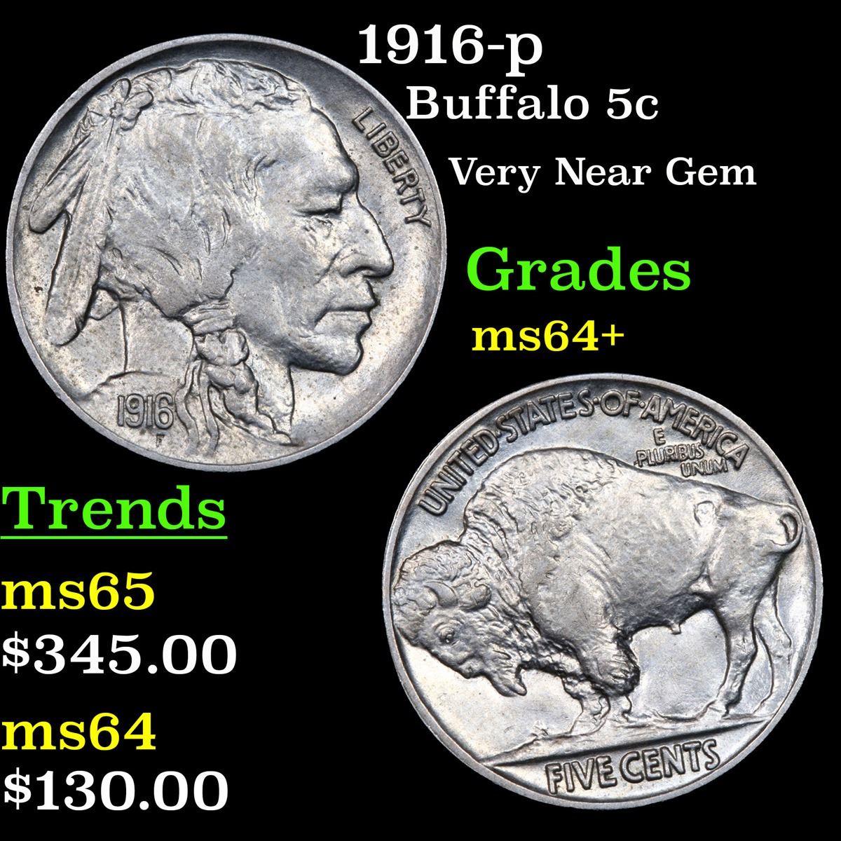 1916-p . Very Near Gem Buffalo Nickel 5c Grades Choice+ Unc.