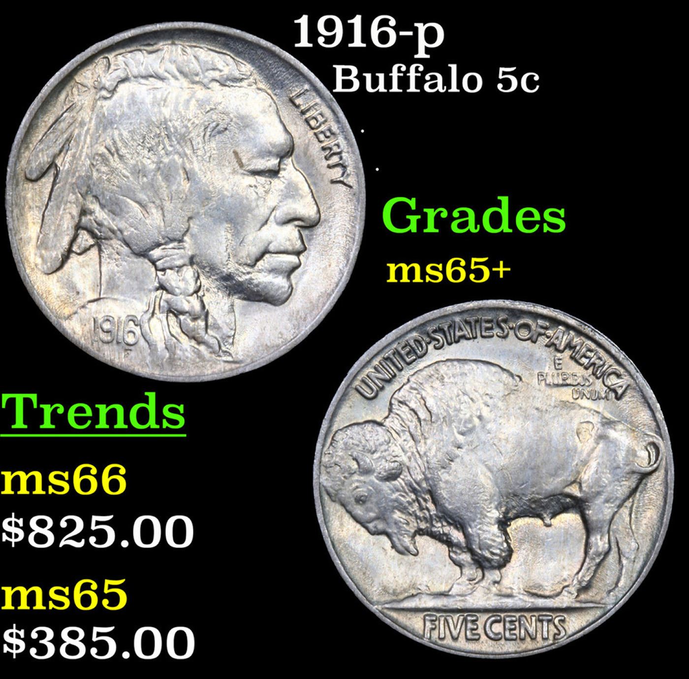 1916-p Buffalo Nickel 5c Grades GEM+ Unc.