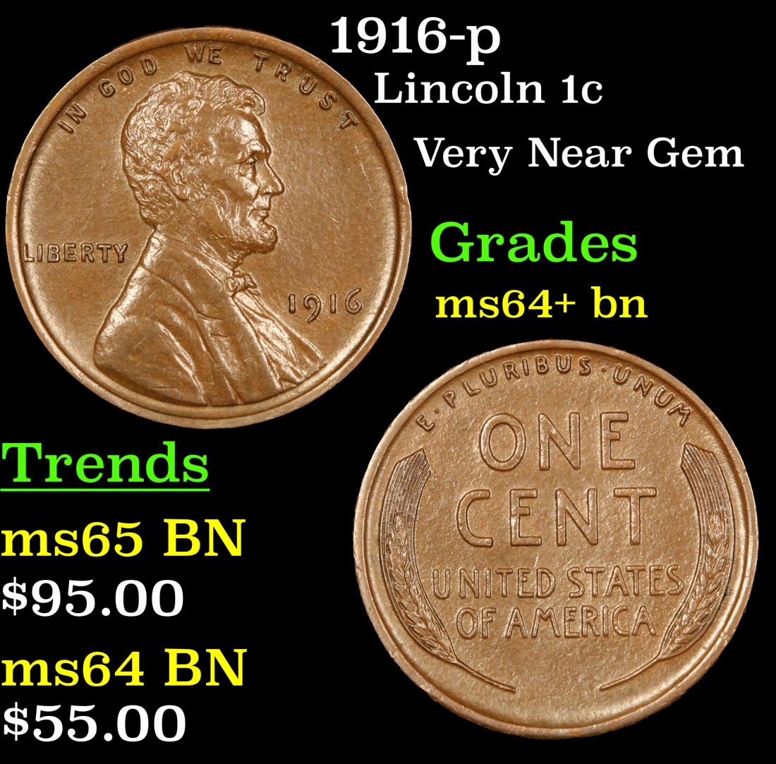1916-p . Very Near Gem Lincoln Cent 1c Grades Choice+ Unc BN.
