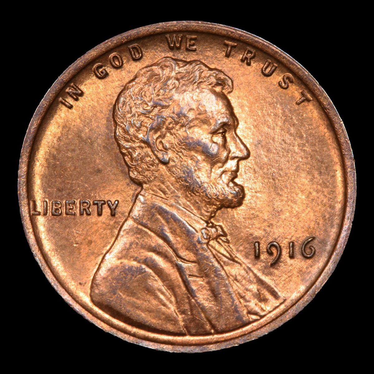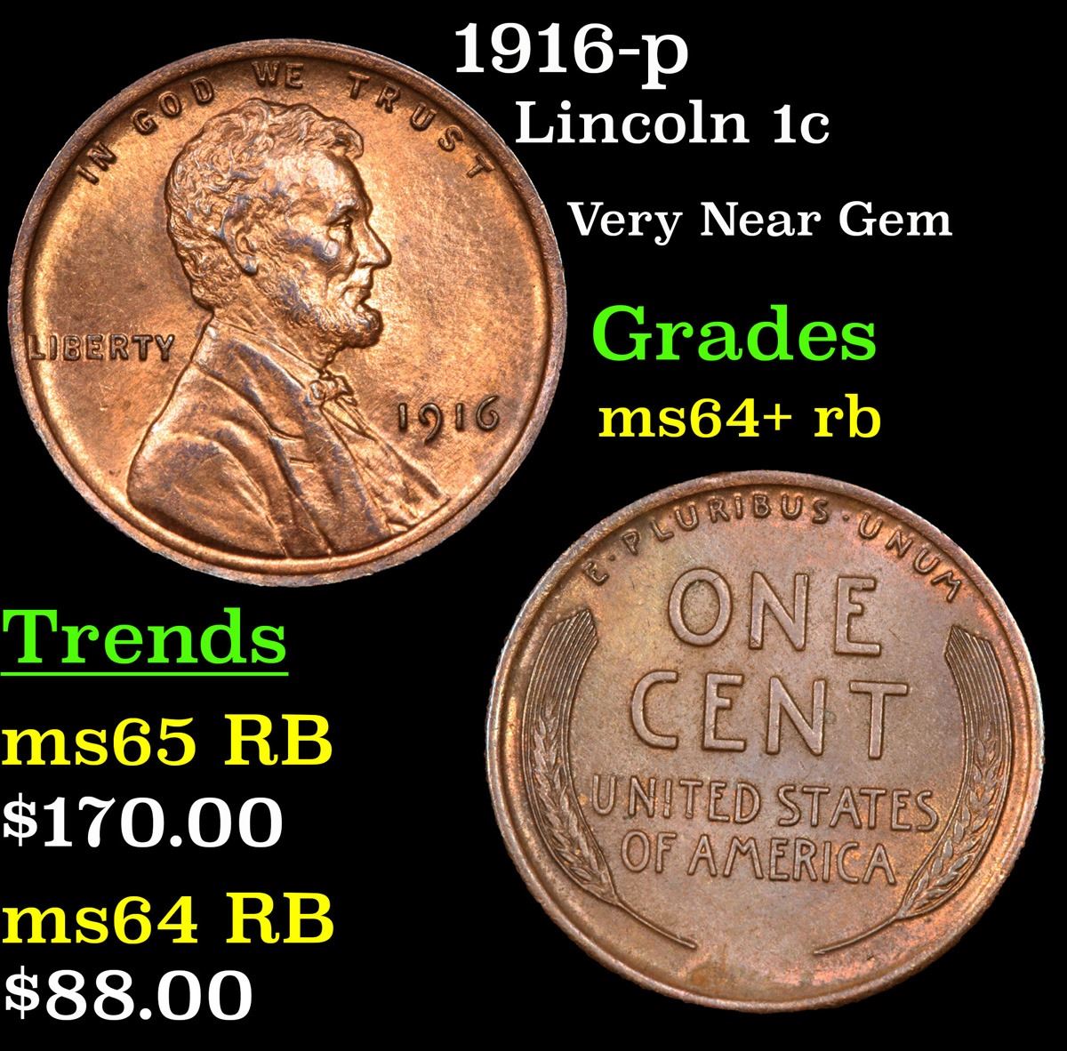 1916-p . Very Near Gem Lincoln Cent 1c Grades Choice+ Unc RB.
