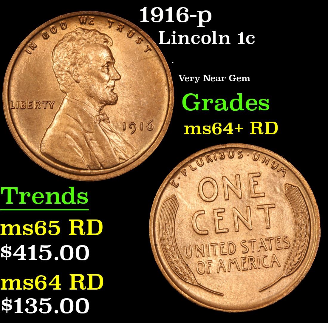 1916-p . Very Near Gem Lincoln Cent 1c Grades Choice+ Unc RD.
