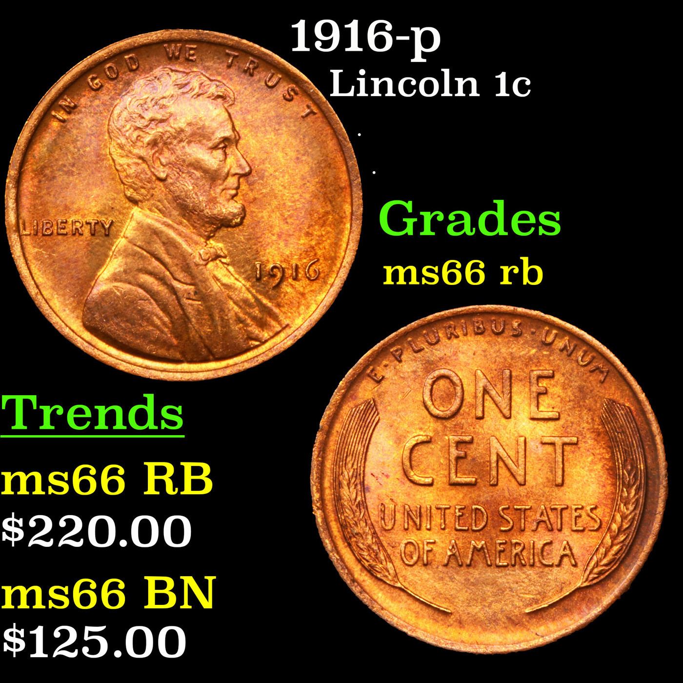 1916-p Lincoln Cent 1c Grades GEM+ Unc RB.