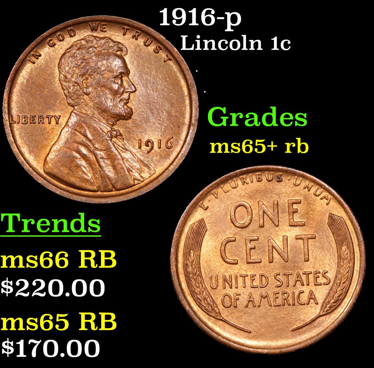 1916-p . . Lincoln Cent 1c Grades Gem+ Unc RB.
