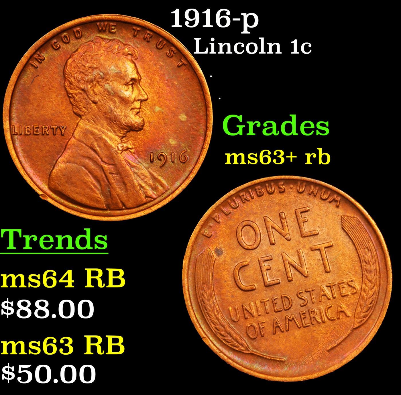 1916-p Lincoln Cent 1c Grades Select+ Unc RB.