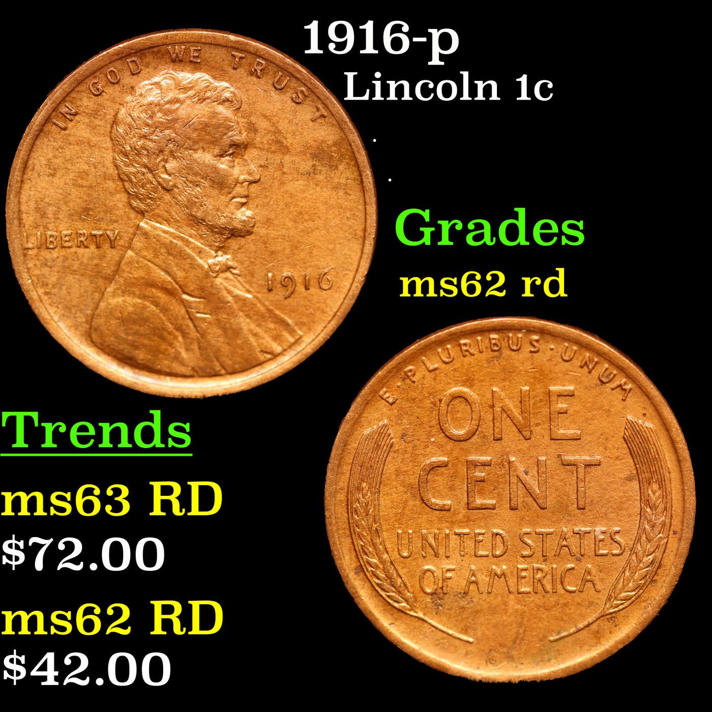 1916-p Lincoln Cent 1c Grades Select Unc RD.