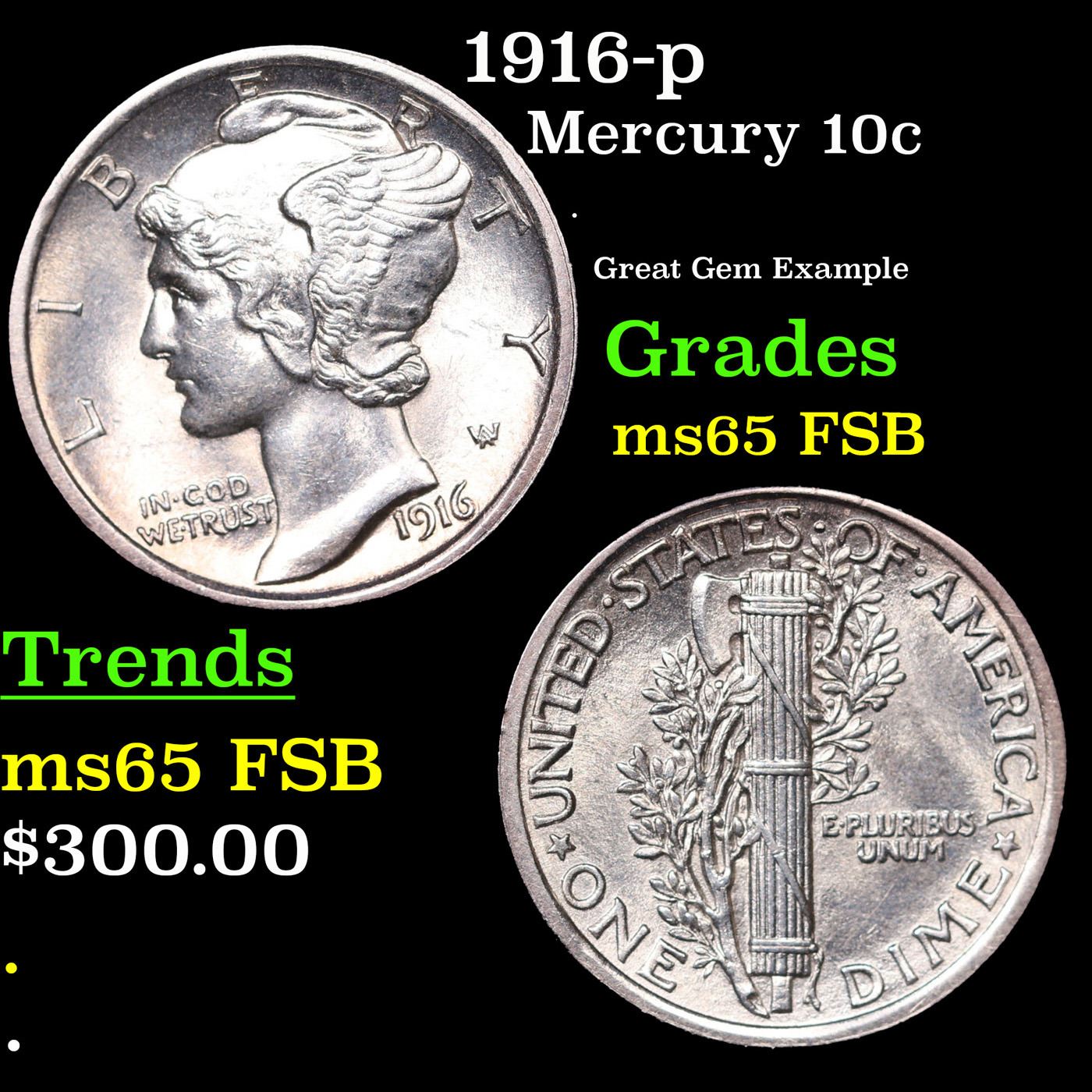 1916-p Mercury Dime 10c Grades GEM FSB.