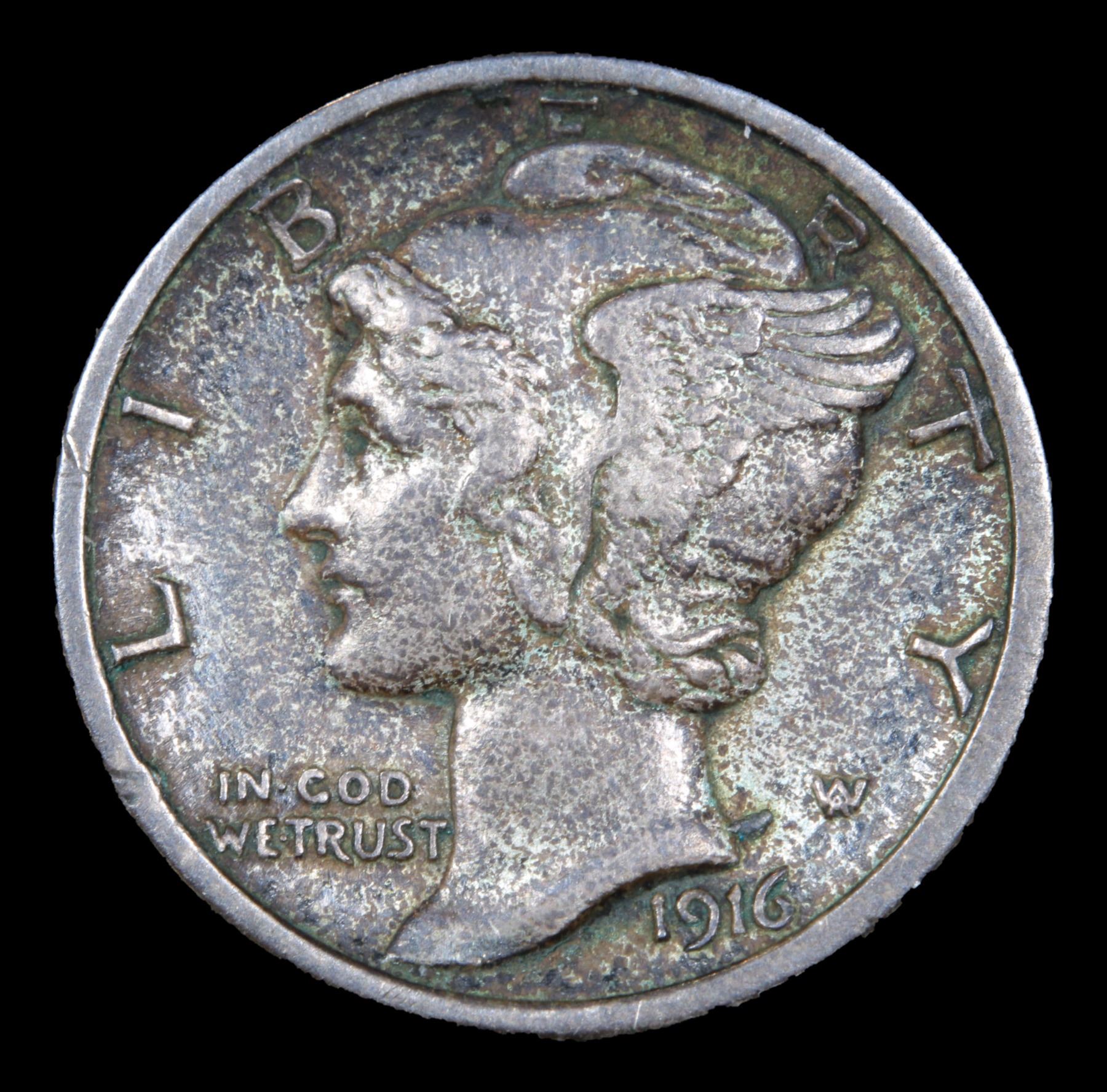 1916-p Mercury Dime 10c Grades Select Unc FSB.