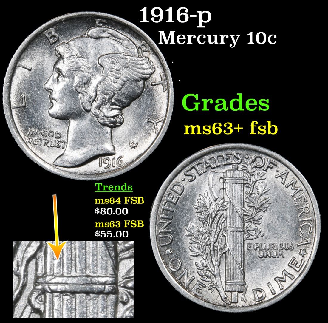 1916-p . . Mercury Dime 10c Grades Select Unc+ FSB.