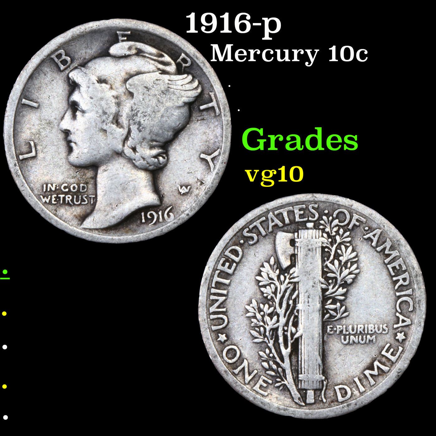 1916-p Mercury Dime 10c Grades vg+.