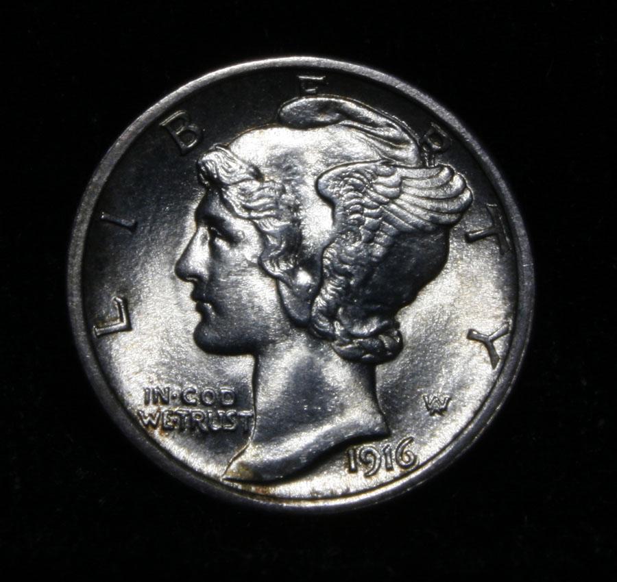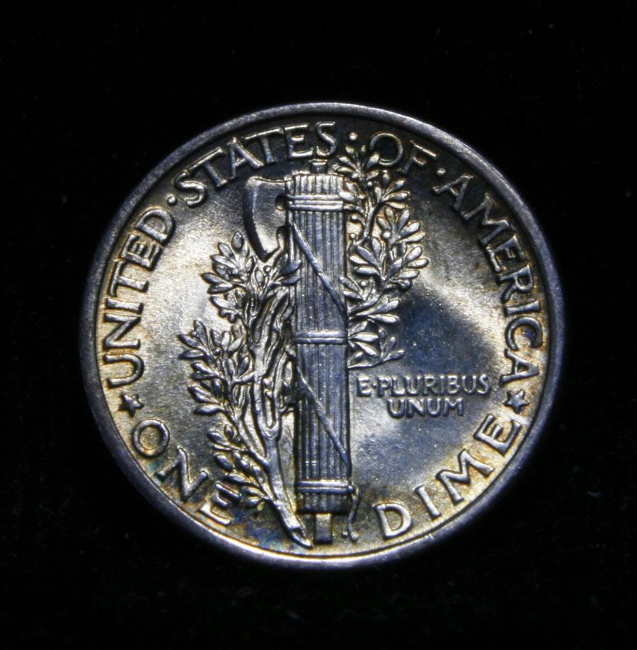 A All Original lightly golden toned Gem Uncirculated example of this first year of the Liberty Head or "Mercury" Dime. This Example has the Elusive FULL SPLIT BANDS. Coin World's Coin Values lists ms65 FSB as $200 and The Wholesale Greysheet lists ms65FSB as $130. Estimated Value $150