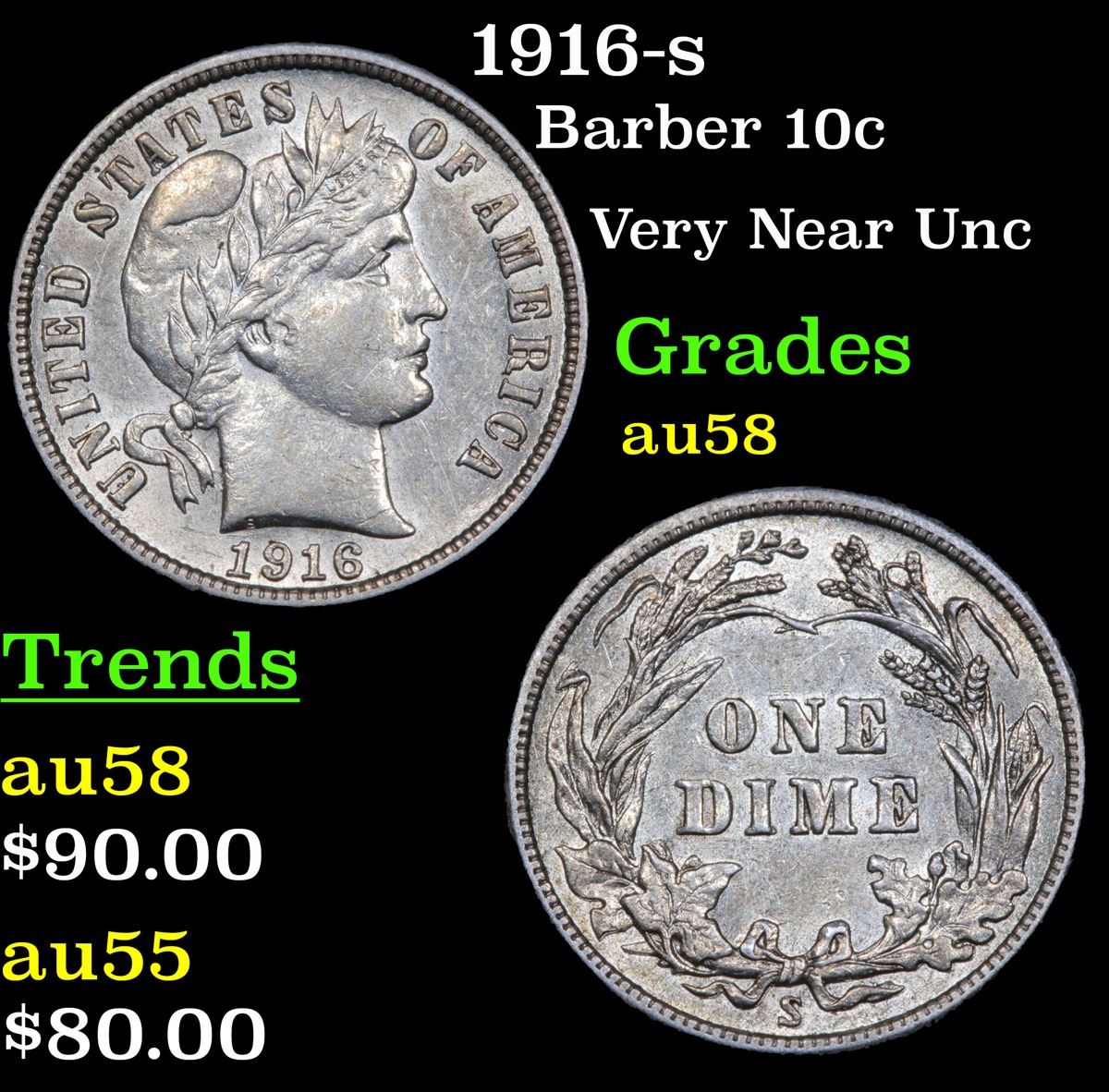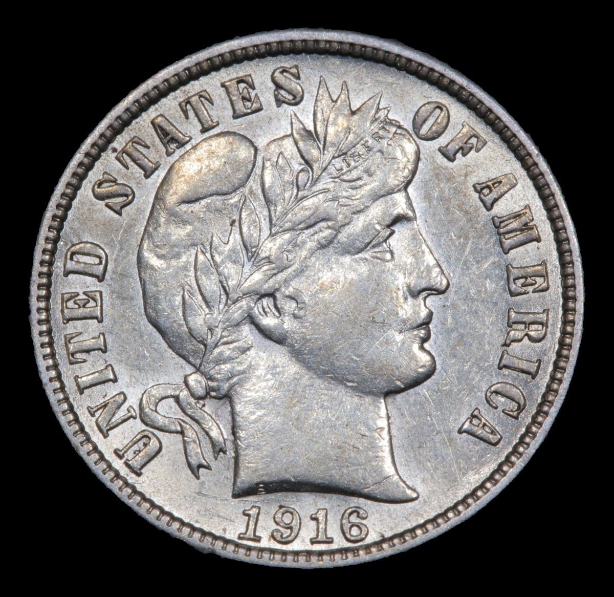 1916-s . Very Near Unc Barber Dime 10c Grades Choice AU/BU Slider. Final year of issue of the Barber Dime.