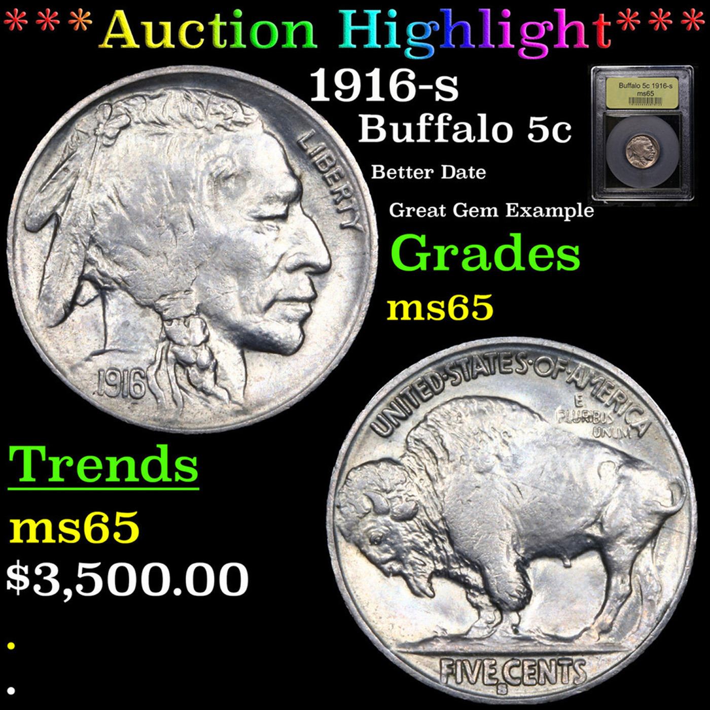 1916-s Buffalo Nickel 5c Graded GEM Unc By USCG. A tough date.