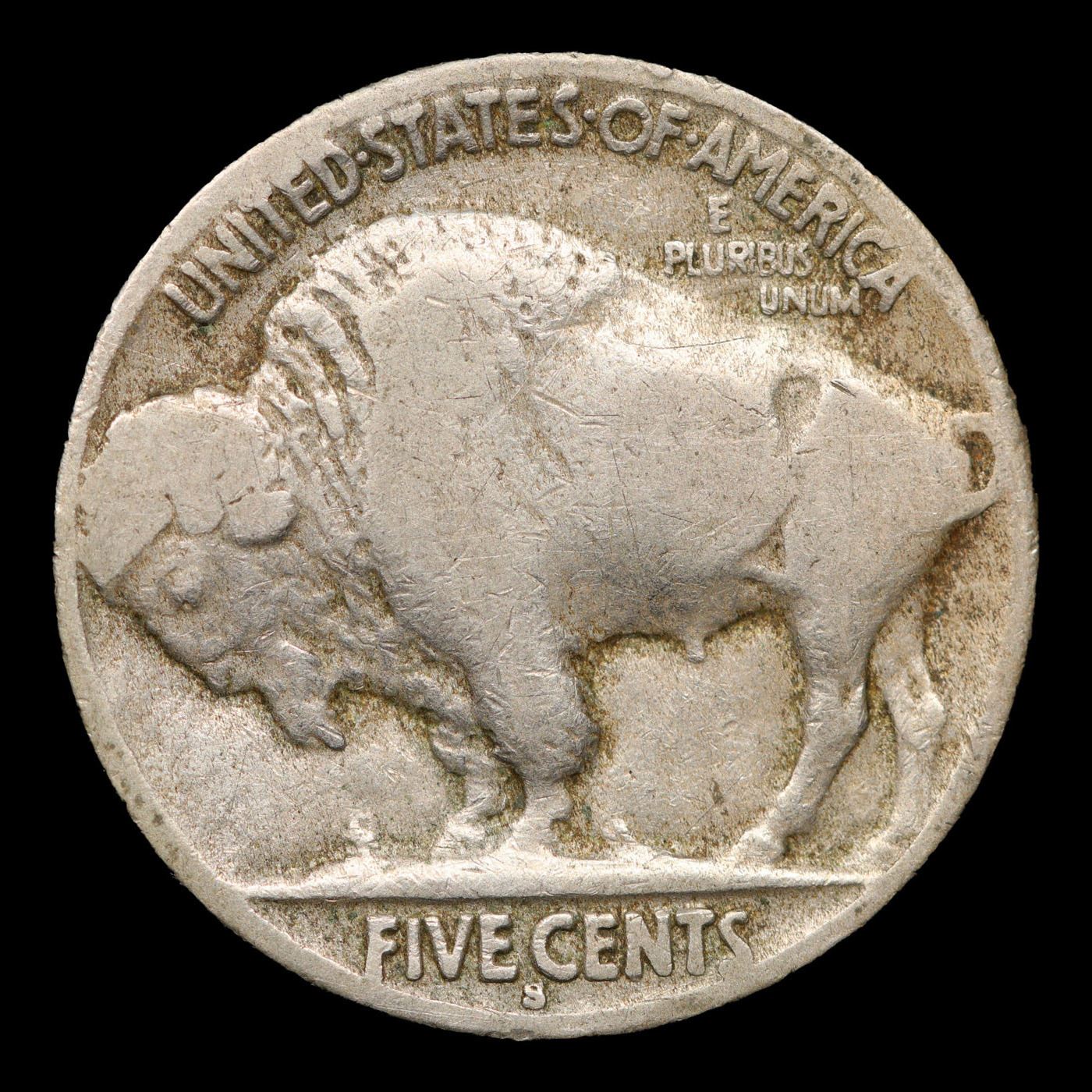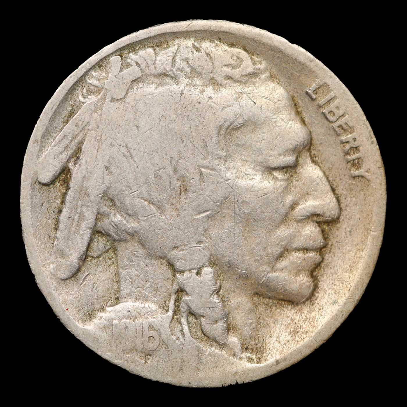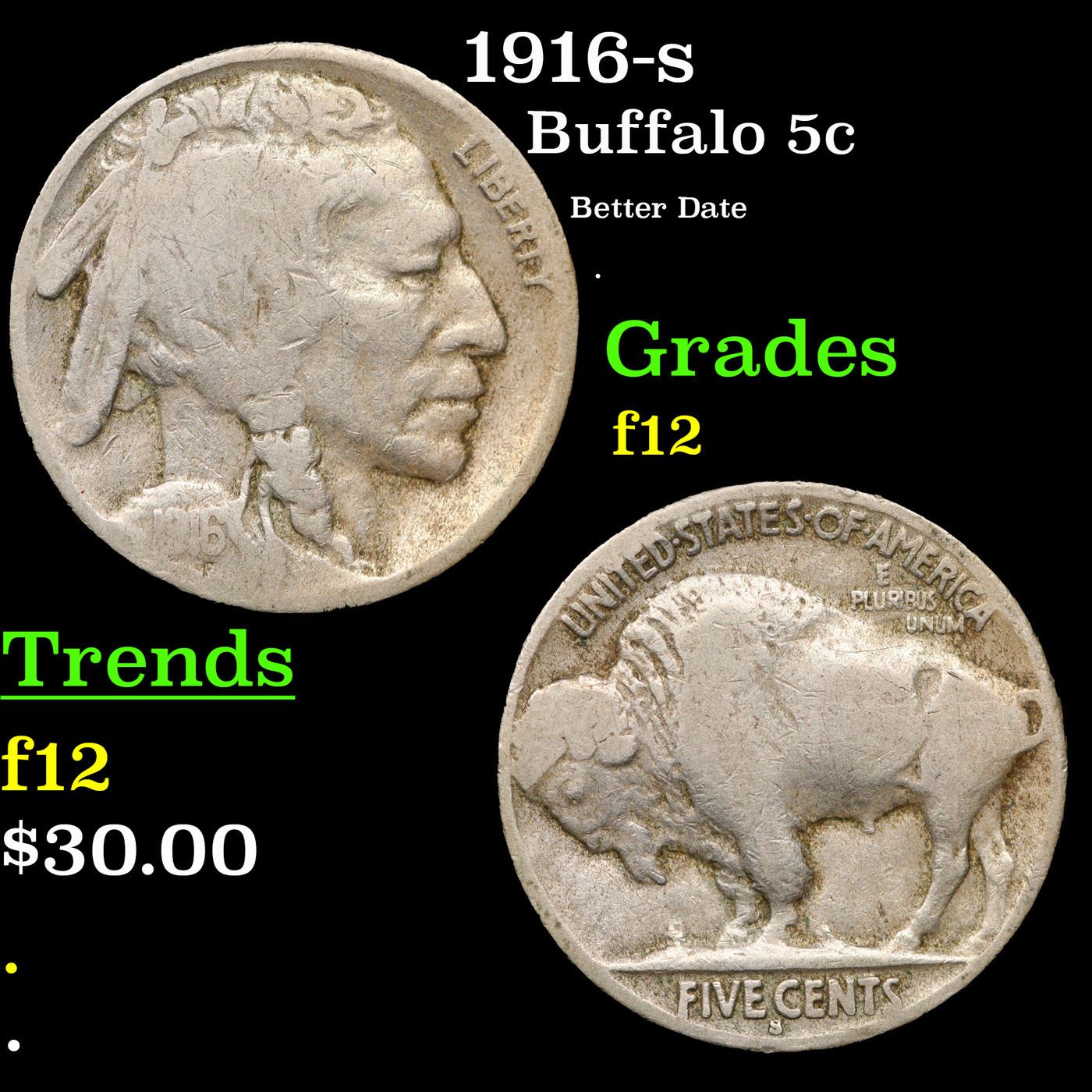 1916-s Buffalo Nickel 5c Grades f, fine. A tough date.