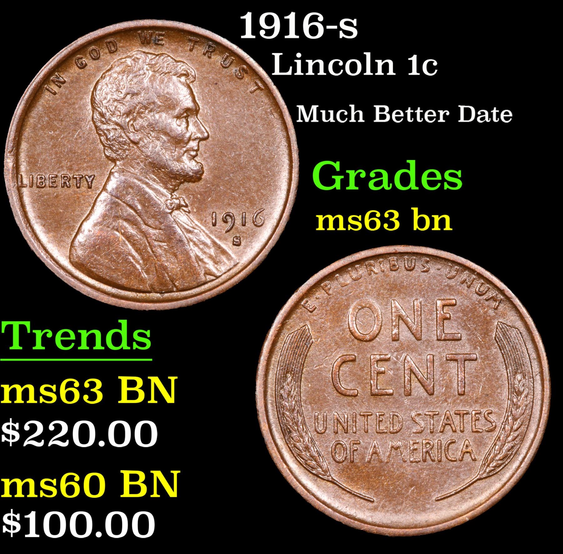 1916-s Much Better Date . Lincoln Cent 1c Grades Select Unc BN. A Corey's Pick