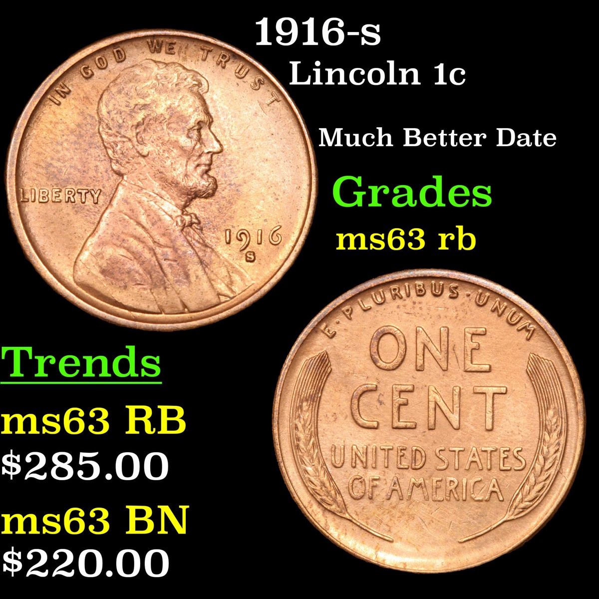 1916-s Much Better Date . Lincoln Cent 1c Grades Select Unc RB.