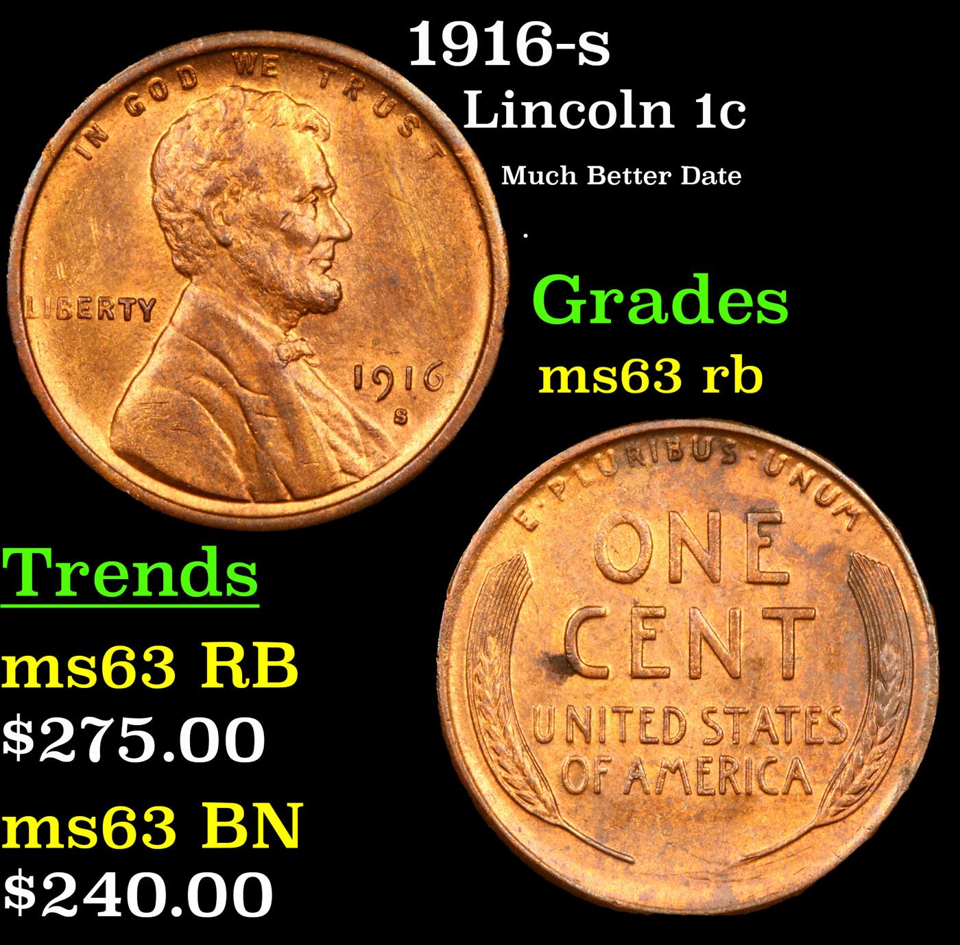 1916-s Lincoln Cent 1c Grades Select Unc RB.