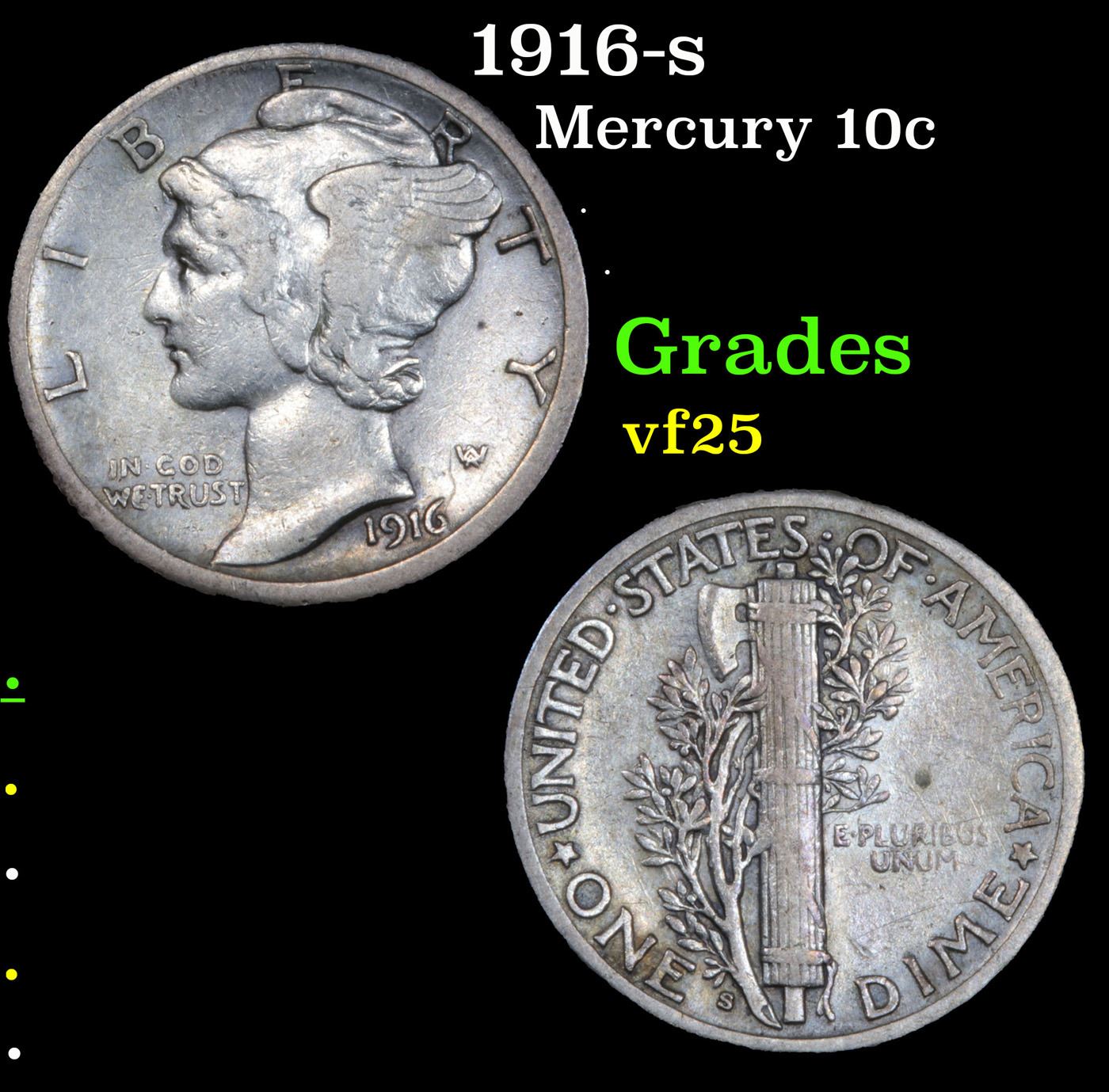 1916-s Mercury Dime 10c Grades vf+.