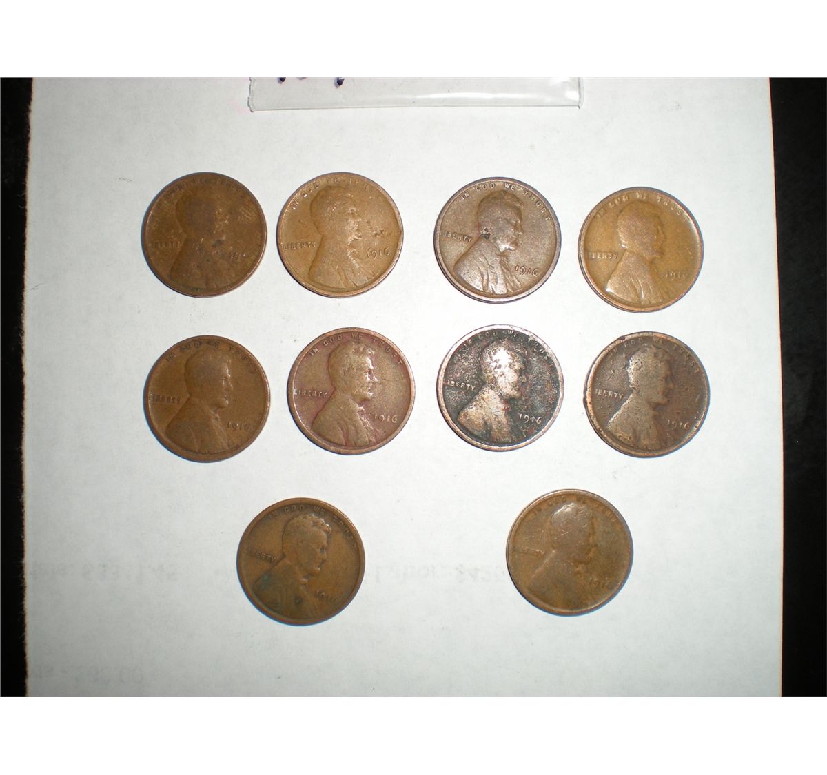 1916 wheat pennies x10***Coin, Currency, Gemstones & All Items Listed in this auction along with their respective Grades, Conditions and Values are not T&T Auctions Responsibility. Every person has their own opinion. It is the responsibility of the buyer to examine, grade and value each item in this auction to their own satisfaction before they bid. Bidders shall rely entirely on their own inspection and information before bidding.