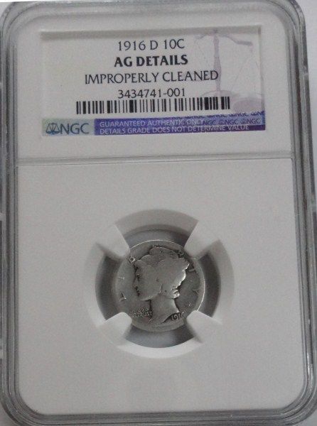 1916D Mercury dime NGC AG cleaned