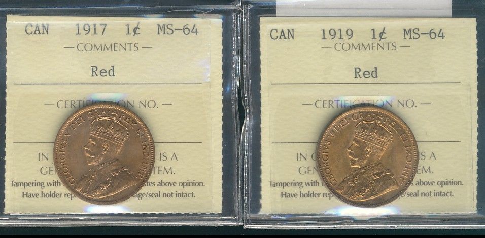 1917 1¢ & 1919 ICCS MS64RD. Lot of 2 very nice coins.