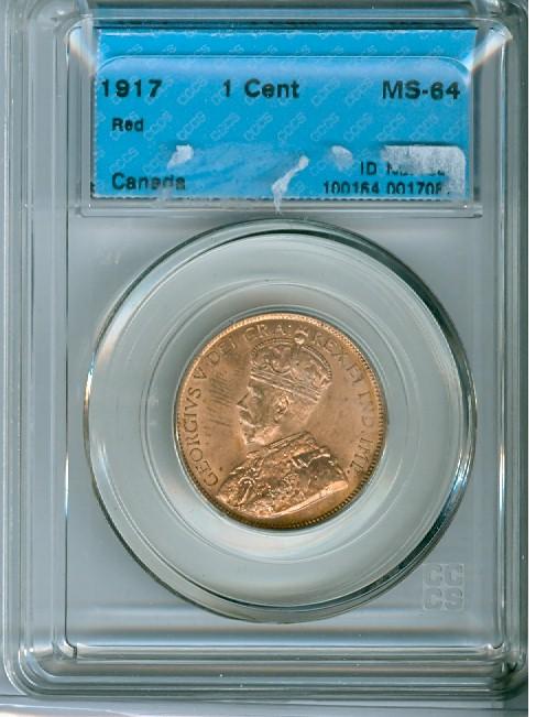 1917 1¢ CCCS MS64 Red, 95% Red lustre. A very nice "George V" example.