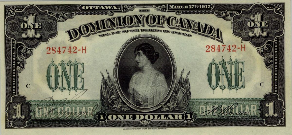 1917 $1 DC-23-a-i #284742-H PMG Gem UNC65. A perfect note with bright and vibrant colours. Very desirable! A scarce and underrated in this condition.