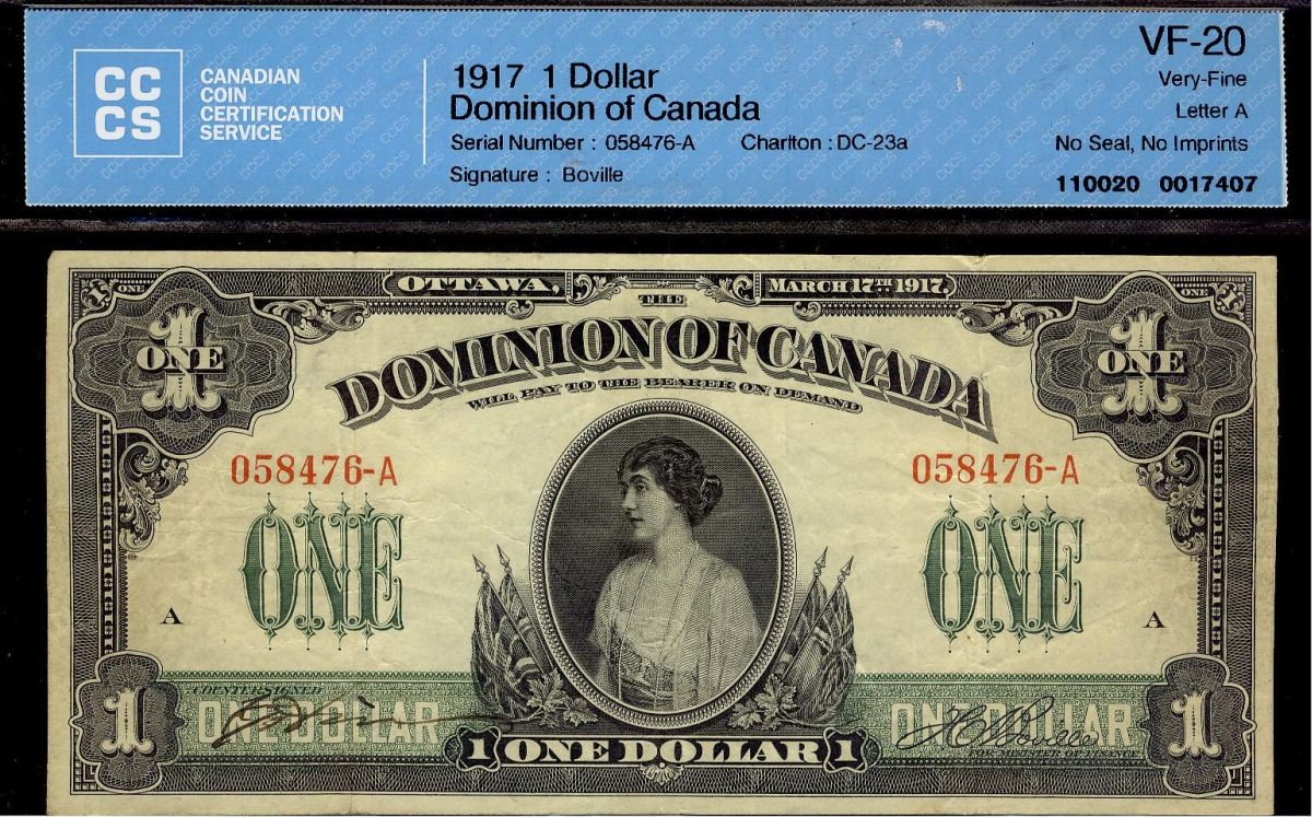 1917 $1 DC-23a #058476-A, CCCS VF20.