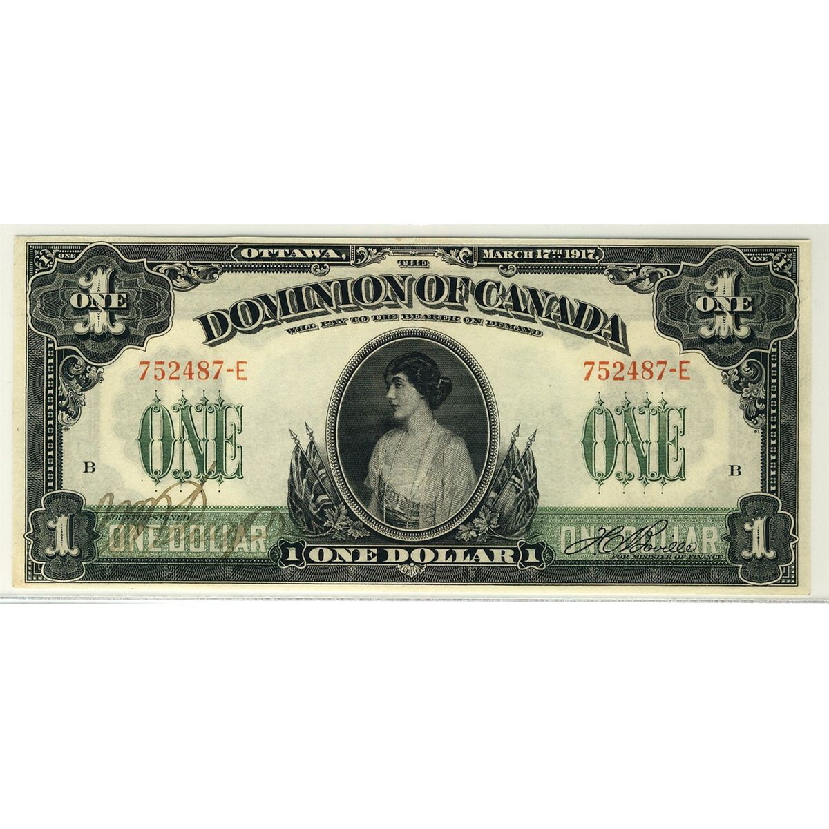 1917 $1 DC-23a #752487-E. CCCS UNC63. Bright attractive issue. Crisp and clean.