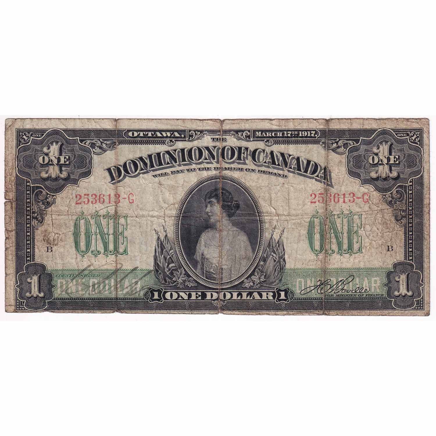1917 $1 DC-23a Dominion of Canada Boville Banknote.