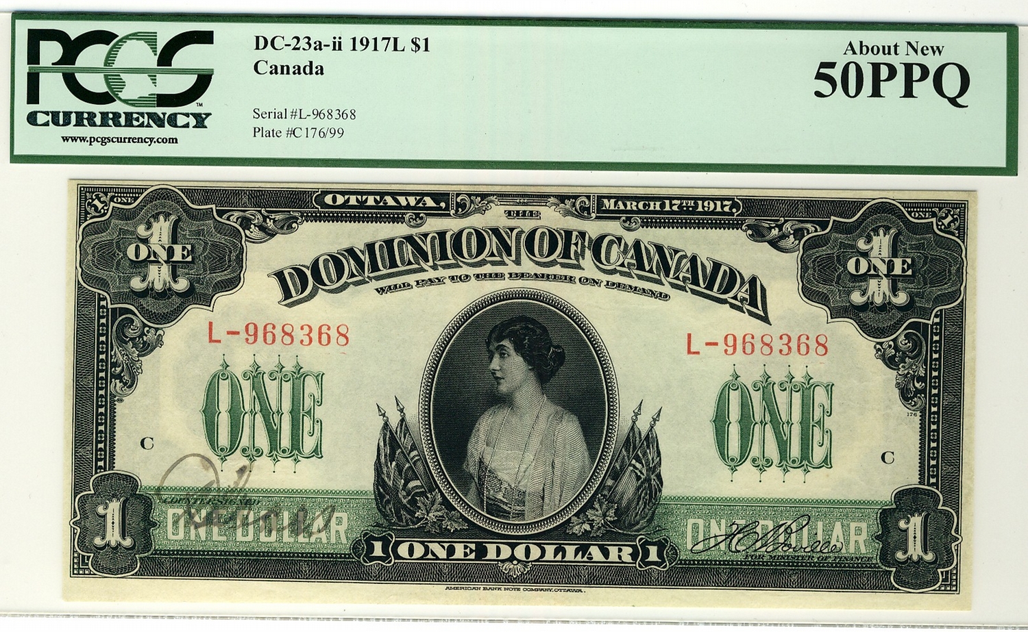 1917 $1 DC-23a-ii #L-968368 PCGS AU50 PPQ