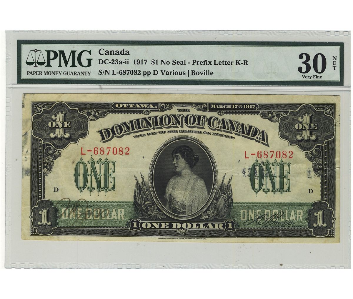 1917 $1 DC-23a-ii. #L687082 PMG VF30 Net. Paper pills ink.