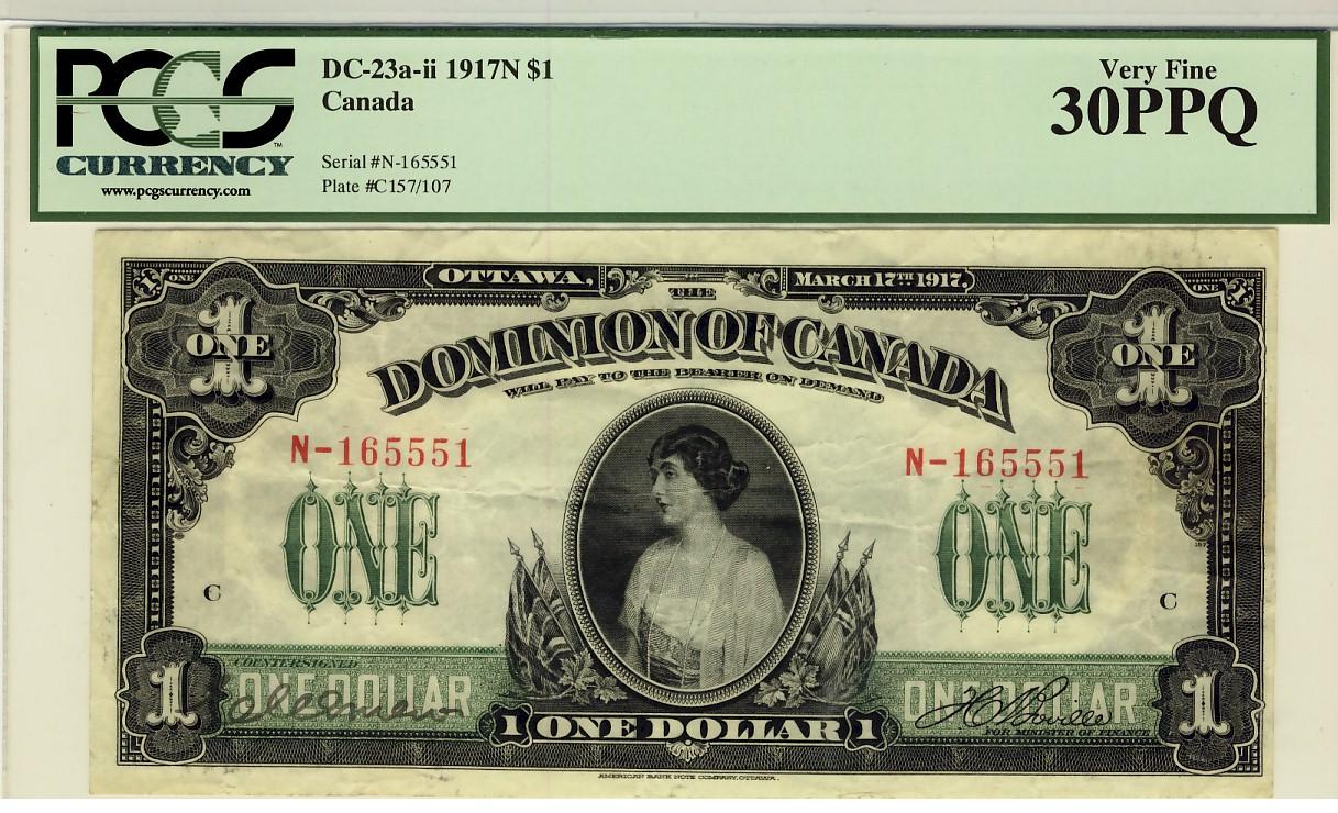 1917 $1 DC-23a-ii N-165551 PCGS VF30PPQ