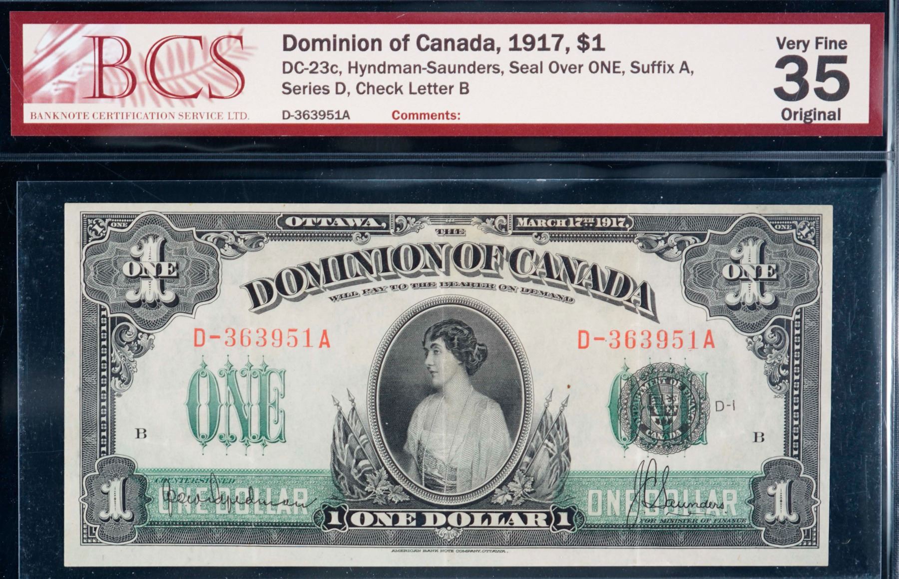 1917 $1 DC-23c #D-363951A BCS Choice Very Fine-35. A very nice and bright example.