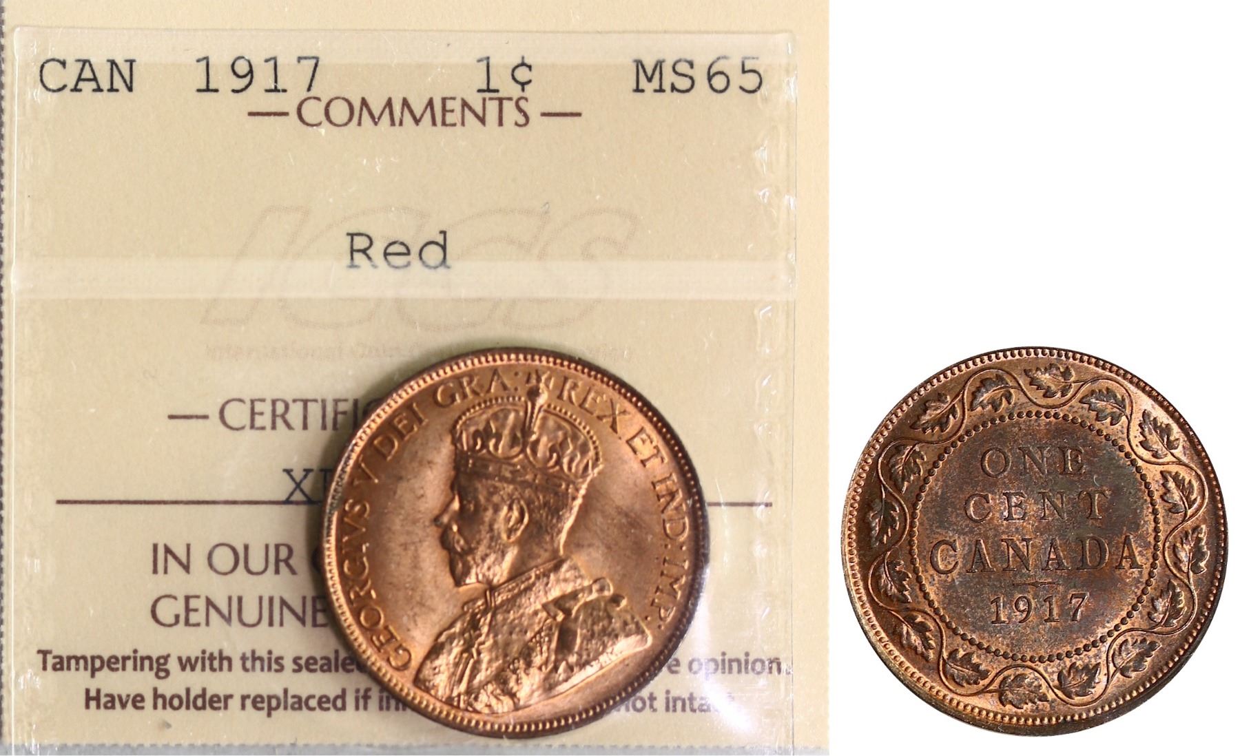 1917 1¢ ICCS Gem Mint State-65 Red 80% Red lustre.