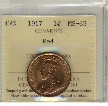 1917 1¢ ICCS MS65RD. 85% red with lustre.
