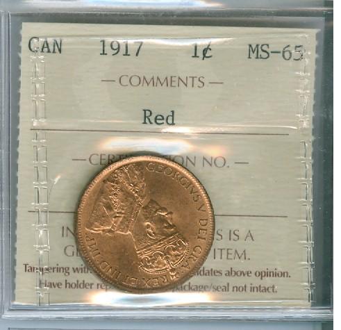 1917 1¢ ICCS MS65RD. 95% red.