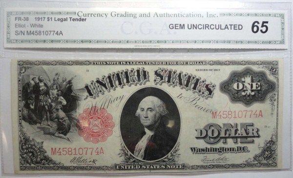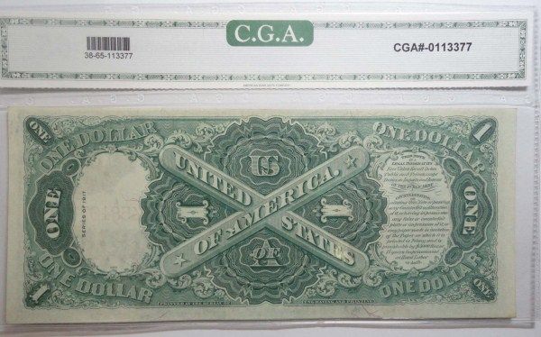 1917 $1 LEGAL TENDER CGA 65 GEM
