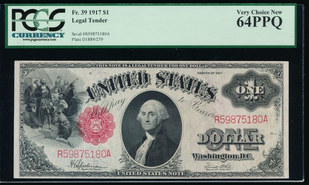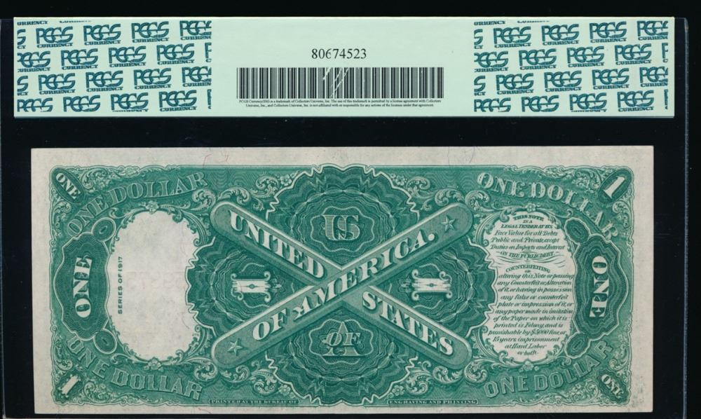 One 1917 $1 Large Legal Tender Note PCGS 64PPQ.