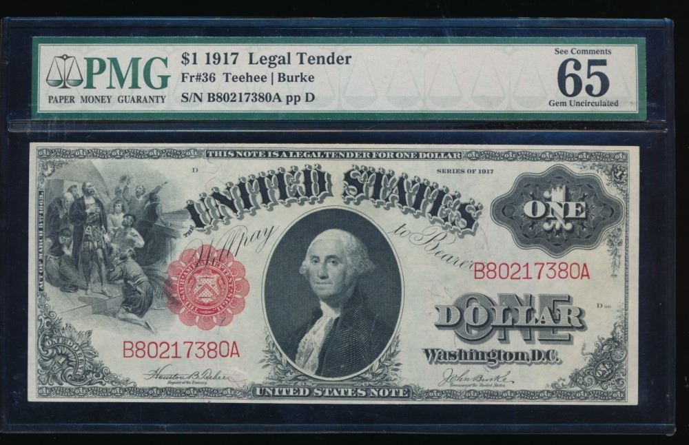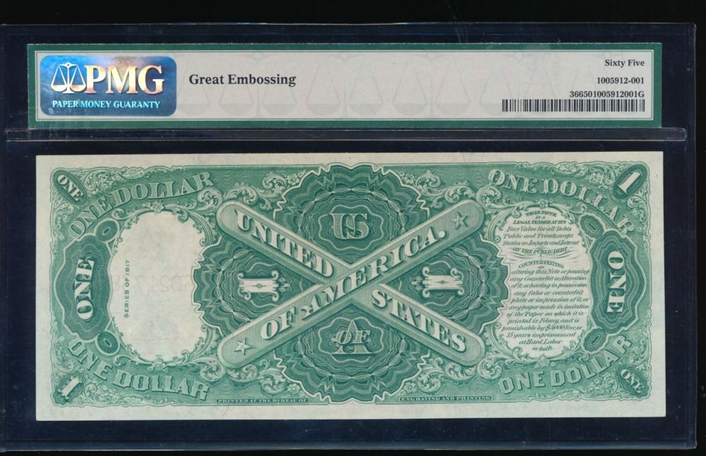 One 1917 $1 Large Legal Tender Note PMG 65.