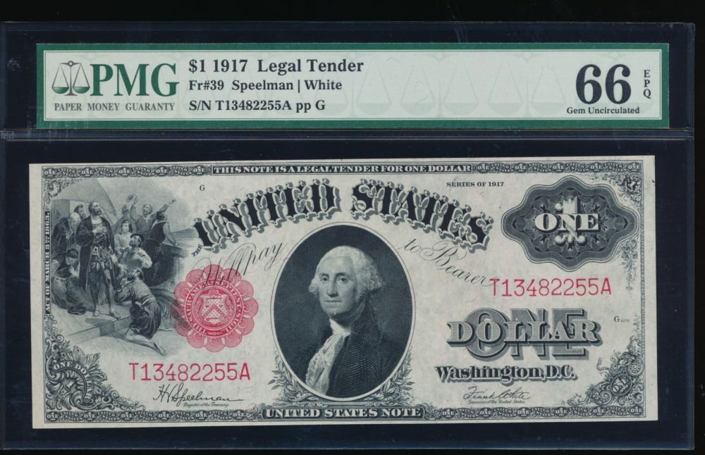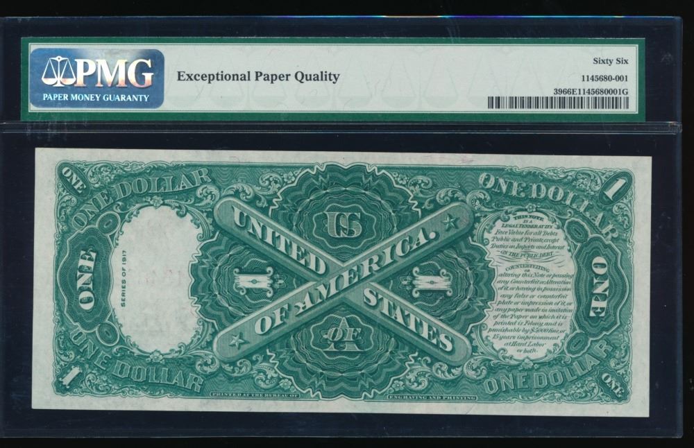 One 1917 $1 Large Legal Tender Note PMG 66EPQ.